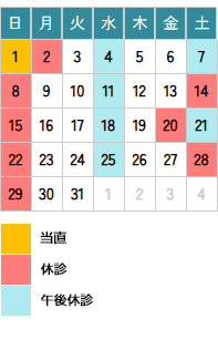 | 診療時間 | 月 | 火 | 水 | 木 | 金 | 土 | |