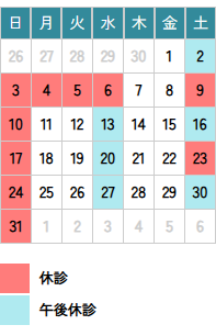 | 診療時間 | 月 | 火 | 水 | 木 | 金 | 土 | |